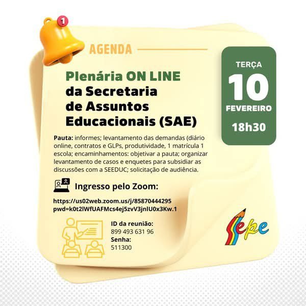Silêncio da Prefeitura sobre a equiparação da AEIs: a direção do Sepe oficiou o prefeito e seu secretário de Educação, solicitando com urgência informações sobre a data de implementação da Lei 15.326/2026 (antigo PL 2387/2023), que determina a inclusão das Agentes da Educação Infantil (AEIs) entre as profissionais do magistério. No documento, o Sepe destaca que a nova lei permite que professores(as) que atuam em creches, por exemplo, tenham direito ao piso nacional do magistério.