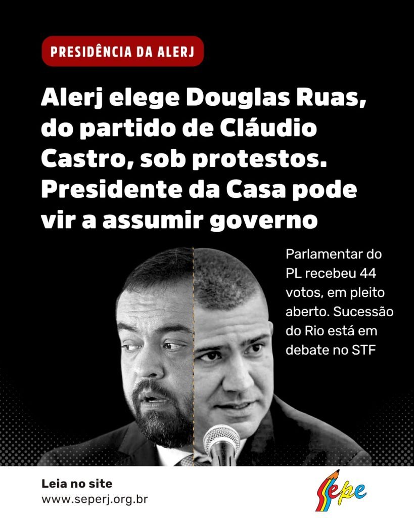 O Sepe se mantém atento, acompanhando o desenrolar desta disputa política entre os partidos de direita e extrema-direita que apoiam explicitamente o novo presidente eleito da Alerj e a oposição. No entender do sindicato, a eleição de Ruas é uma tentativa dos partidos que compuseram a base de sustentação do desgoverno Cláudio Castro de manter as rédeas na política estadual, com vistas a garantir dividendos eleitorais nas eleições gerais de outubro deste ano.