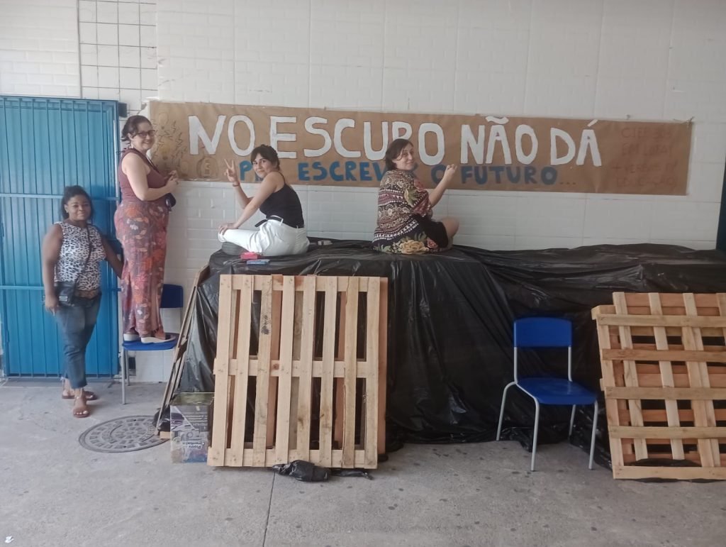A Regional 1 do Sepe realizou um protesto hoje (26) no Ciep Ayrton Senna, na Estrada da Gávea, na Rocinha, que há dias se encontra funcionando precariamente, com aulas no pátio em sistema de rodízio, por causa de problemas nas instalações elétricas. Profissionais e alunos da unidade também participaram da manifestação para exigir do governo do estado e da SEEDUC providências para o reparo das instalações e demais equipamentos da escola para que ela possa voltar a funcionar normalmente.