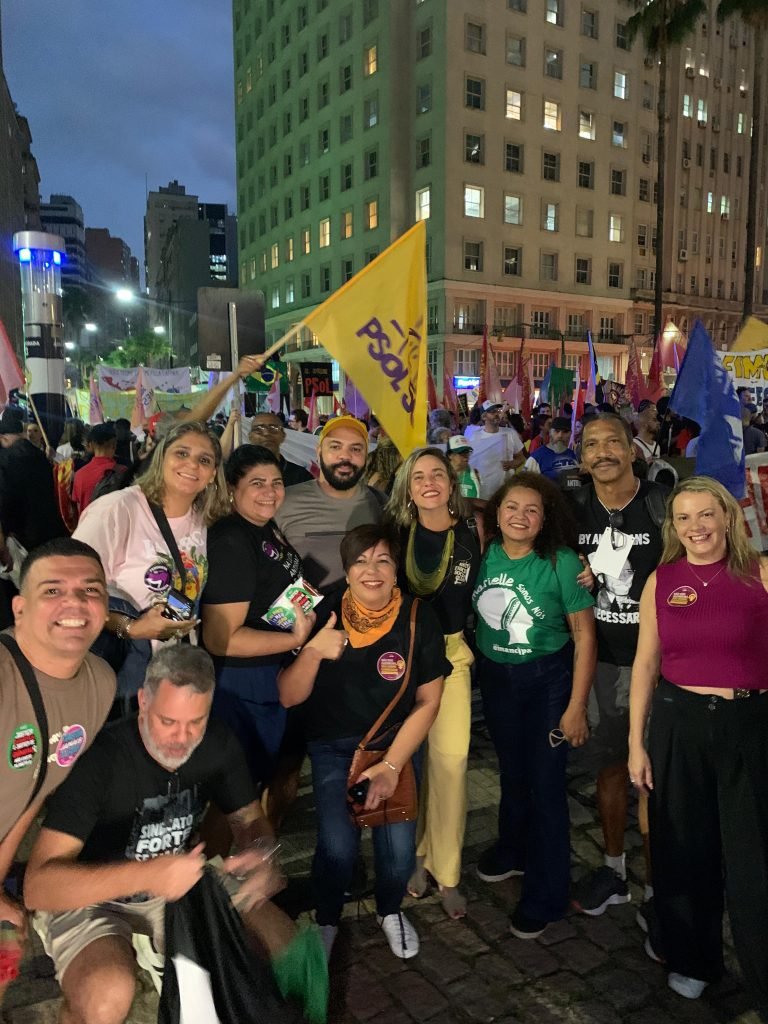 Os profissionais que integram a delegação do Sepe RJ na 1ª Conferência Internacional Antifascista Pela Soberania dos Povos, que se iniciou ontem, dia 26 de março, em Porto Alegre (RS), participaram da marcha de abertura realizada no centro da capital gaúcha. O Sepe enviou uma delegação de 70 pessoas para participar das discussões e da formulação de estratégias para conter o avanço das forças fascistas e da extrema-direita ao nível mundial, apoiadas por grande parte importante do capital financeiro internacional.