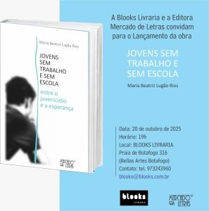 A diretora do Sepe Central, professora Maria Beatriz Lugão Rios, lançará pela editora Mercado de Letras o livro “Jovens sem trabalho e sem escola: entre o Juvenicídio e a esperança”. O evento de lançamento acontece nesta segunda-feira (20/10), às 19h, na Blooks Livraria, localizada na Praia de Botafogo, 316, no Bellas Artes Botafogo.