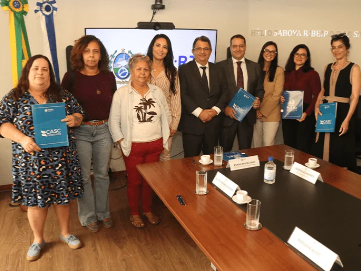 Direção do Sepe na PGE em outubro de 2025, durante assinatura do acordo que permitiu o pagamento dos profissionais referente à ação do Nova Escola 2005.