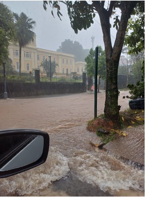 Chuva forte cai desde o início da madrugada, alagando ruas e bairros da cidade imperial. Prefeitura, mesmo com os alertas meteorológicos, não decretou ponto facultativo e teve que mandar fechar as escolas hoje pela manhã, com profissionais e crianças ilhados dentro das unidades.
