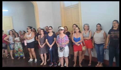 Categoria está ocupando a Secretaria Municipal de Educação desde o início da manhã desta segunda-feira (8) e exige uma audiência com o prefeito Saulo Corres (PL)