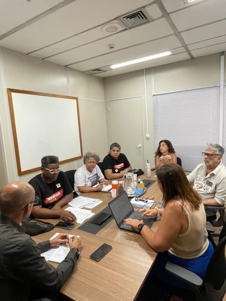 Comissão de representantes do sindicato em reunião com a assessoria no gabinete da SME RJ