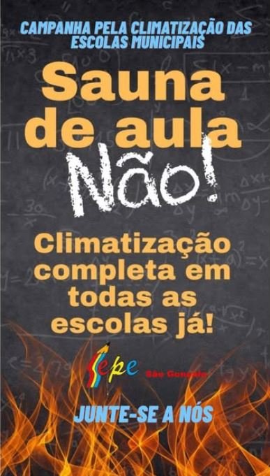 Isso inviabiliza o aprendizado dos estudantes, prejudica a saúde de todos e torna o trabalho dos profissionais da educação inviável. Por conta desta situação, O Sepe lançou o “Plebiscito sobre Climatização” nas escolas da rede municipal Gonçalense, para saber a opinião da comunidade escolar e população, a respeito das altas temperaturas as quais nossos estudantes e profissionais da educação têm sido submetidos.