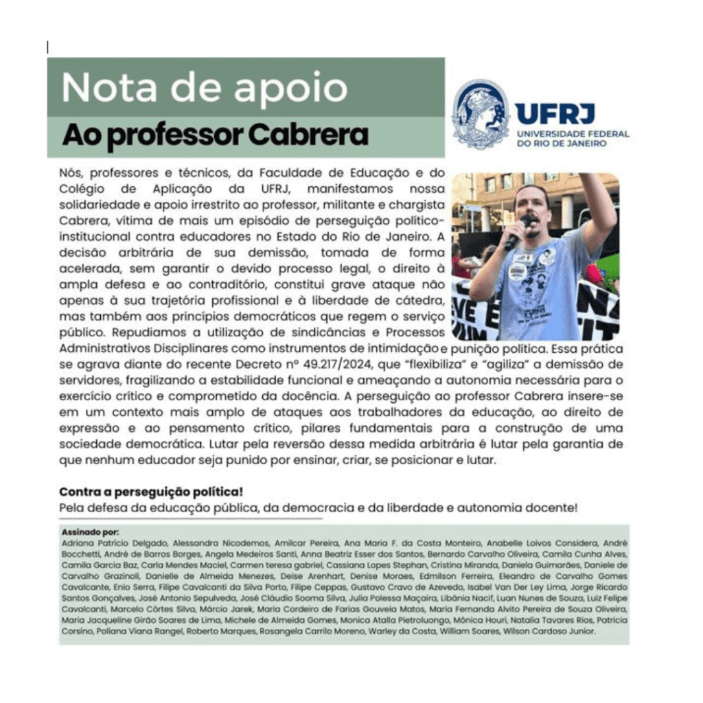 CLIQUE AQUI PARA ASSINAR A PETIÇÃO ELETRÔNICA CONTRA A DEMISSÃO DO PROFESSOR CABRERA