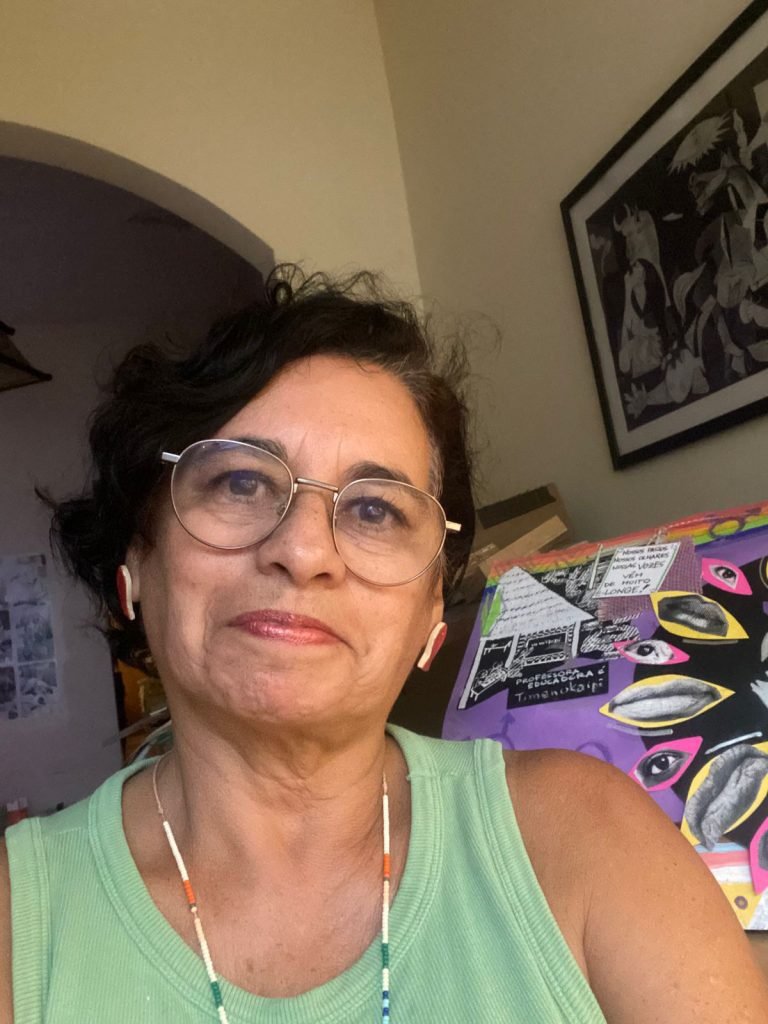 “Como professora artista adquiri, ao longo da minha trajetória, referências em muitas mulheres artistas. Neste projeto, destaco Daiara Tukano e Carmézia Emiliano, ambas da arte contemporânea indígena. Fragmentos de suas obras, ora surgem como camadas em lambe lambe, ora com técnicas do graffiti em formas de grafismos ou stencil.